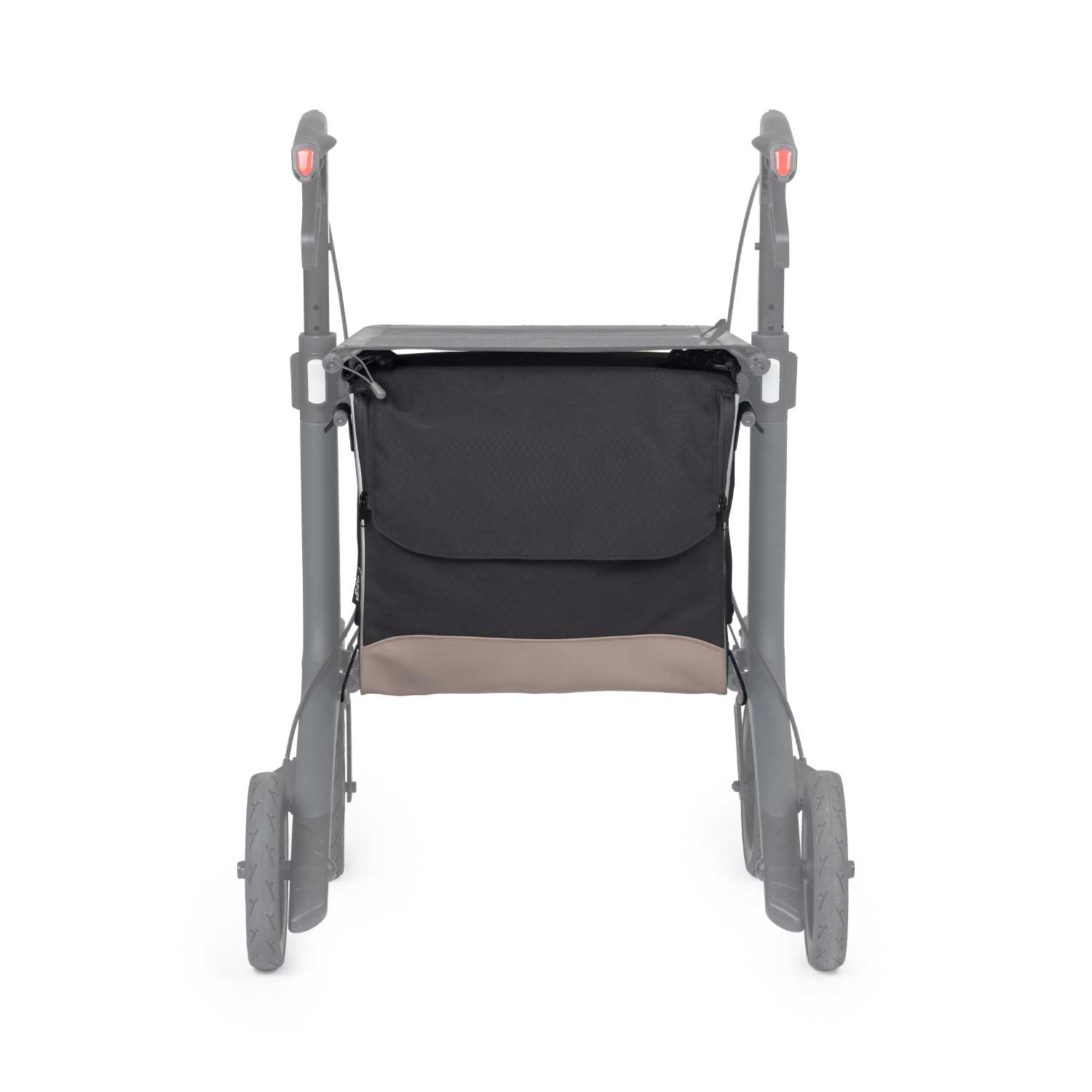 De Rollz Air/Flow Deluxe Bag is een luxe, ruime set van twee losse tassen, gemaakt van hoogwaardige, waterafstotende stoffen en ontworpen met doordachte details die onderweg het verschil maken. De tassen zijn eenvoudig aan zowel de Rollz Air als de Rollz Flow te bevestigen en ook zo weer los te halen. Met de handige draagriem neem je ze ook los van de rollator comfortabel met je mee. Beide tassen hebben aan de binnenkant een praktisch telefoonvakje. De brede, luchtige mesh strook aan de onderzijde zorgt ervoor dat er meer licht in de tas valt en je makkelijker vindt wat je zoekt. Reflecterende strips op de zijkanten zorgen voor extra zichtbaarheid in het donker. De voorste tas is afgewerkt met een subtiel Rollz-logo op een cognackleurig label.